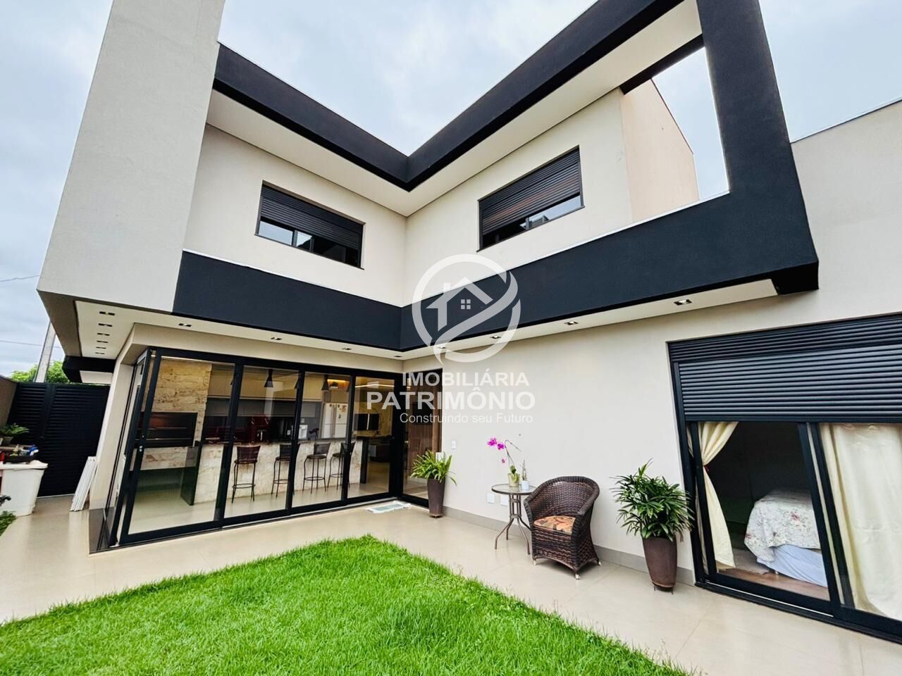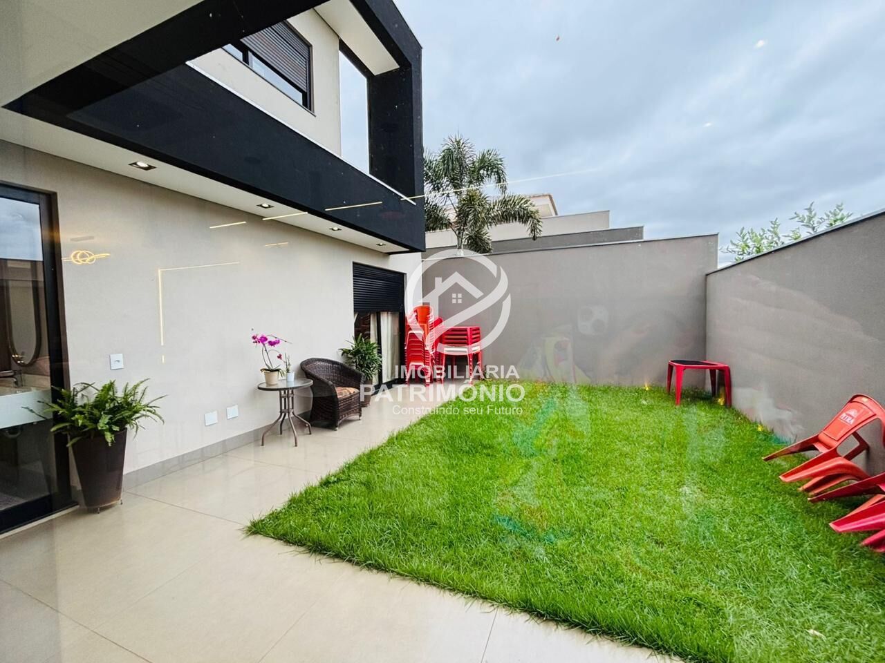 A área externa possui um amplo quintal gramado, ideal para quem tem pets ou deseja construir uma área de lazer privativa.
